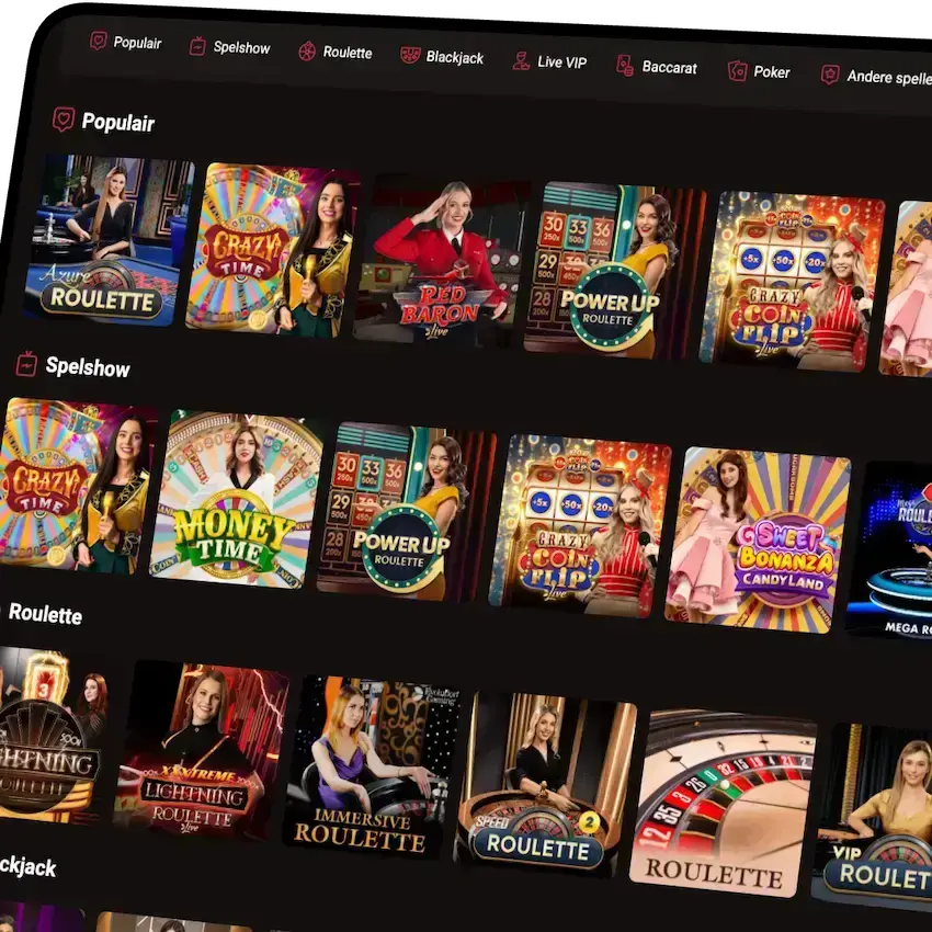 - Meerdere tafels per speltype, met verschillende inzet niveaus (waaronder VIP-tafels).